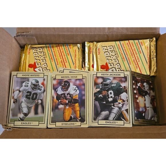 This is a fantastic lot of 1990 Action Packed sports trading cards, perfect for any football fan. The set includes 8 packs and over 160+ cards, all manufactured by Action Packed and made of high-quality card stock.