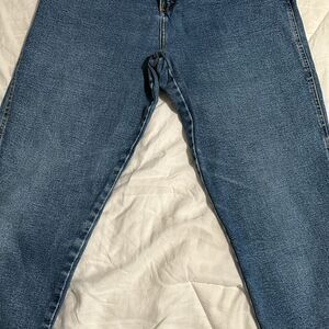 Excellent condition with no flaws vintage medium blue wash straight leg jeans.