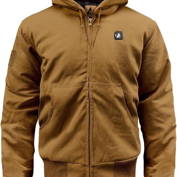 ActionWave Heated Work Jacket – Khaki, Heavy Duty w/ 3 Zone Heating System, Lg