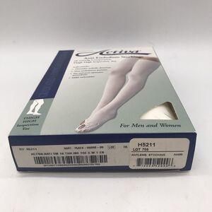Activa Anti-Embolism Socks. 18 mmHg, Graduated Compression, size Small, White, Thigh High with Inspection Toe Stockings. (Please check images to make sure this is your size.)
