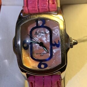 Activa Swiss Made Pink Watch # 495494 new battery original Box