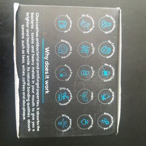 Charcoal has antibacterial and antifungal properties. It absorbs the bacteria, toxins and heavy metals in your mouth to give you a brighter and healthier smile. Its naturalbonding qualities absorb tannins such as teas, wines, coffees and also plaque.
