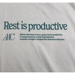 Embody mindful rest with the Active After Coffee “Rest is Productive” Tee, size L. This unisex graphic T-shirt (New with Tags) belongs to the brand’s Club Mindfulness™ inaugural collection and offers premium comfort with its mid-weight, 100% cotton design.