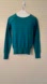 Chic thin teal sweater with crew neck and a cute small breast pocket. Soft and lightweight material in a beautiful jewel tone. In good preowned condition, very little pilling or wear. There is a mall puncture hole near left forearm see last photo for closeup. Easily mended, I just didn’t have the correct thread color to fix it. From a pet free and smoke free household.