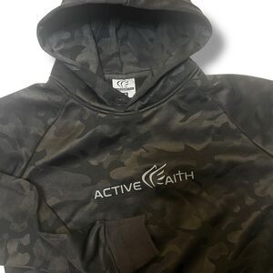 Active Faith Hoodie Camo Size XS In Jesus Name We Play Soft Zip Pocket Stretch. Condition is Pre-owned - Excellent. Shipped with USPS Ground Advantage.