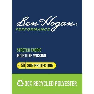 This Ben Hogan Men's Solid Ottoman Golf Polo Shirt makes for versatile casual wear or golf apparel. Built-in moisture wicking and sun protection keep you feeling dry while blocking out harmful UV rays. Durable textured Ottoman fabric and a ribbed collar with three-button placket give it classic polo style. The solid color makes this golf top easy to pair up with any pants or shorts for style that looks great both on and off the course.