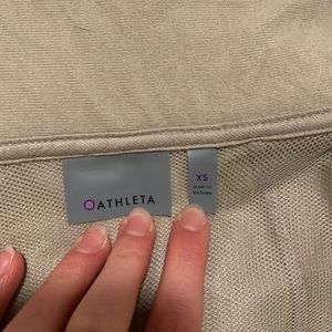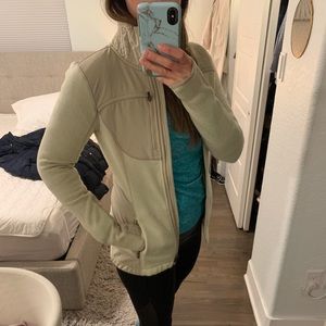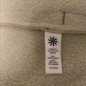 Size XS, color: tan/beige , thumb holes at wrist, vent on shoulders, very warm for light active jacket