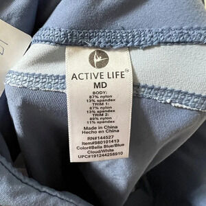 Active Life Womens Leggings M Blue White Exercise Active Mesh Panels Pants Yoga.