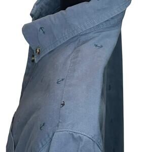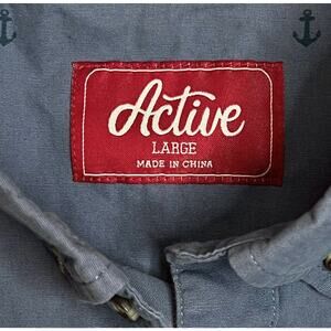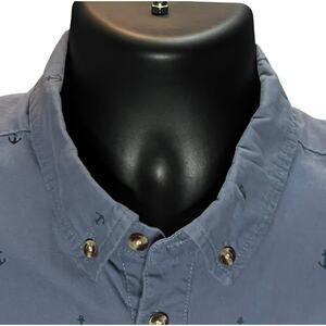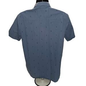 Active Ride Shop Men’s Short Sleeve Shirt Large Blueish Gray Nautical Anchor Print Button Down