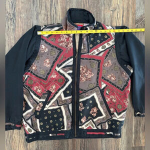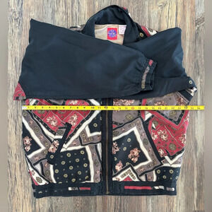 Active Studio Geometric Rose Silk Track Jacket Womens M Removable Sleeves Vtg