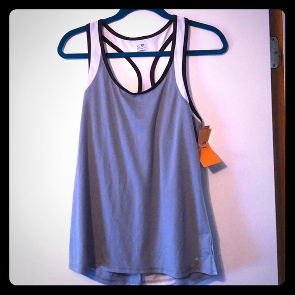 Grey and white active racer back tank top