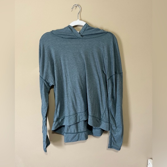 Cute and trendy active top. Little longer in the back. Has a hood and a hole for your thumb. Gently used but still in really good condition! Size M.
