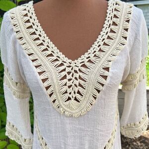 Active USA Boho Crochet Peasant Top Ibiza Festival Beach Cover Up, S/M
