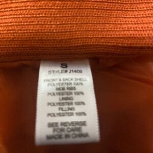 Active USA Burnt Orange Quilted zip front vest, size S (100% Polyester, Lining 100% Polyester)