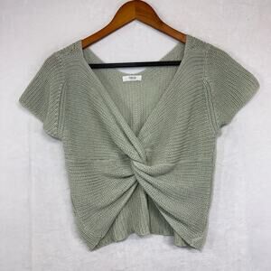 Active USA L Knit Twist Front Cropped Sage Green SoftGirl Y2K Cottage Minimalist