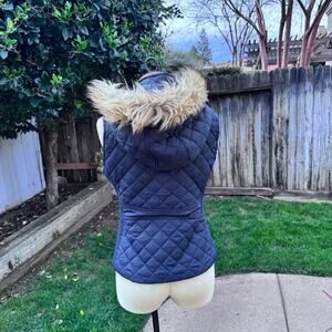 Active USA Navy Blue Quilted Padded Vest w/Side Pockets Women's Size Small. In good preowned condition. Measurements are approximate taken flat.