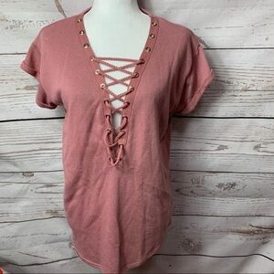 Active USA Oversized Terry Knit Lace-Up T-Shirt