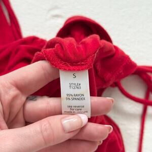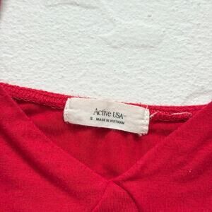Active USA Red Ruched Drawstring Crop Top, Size Small