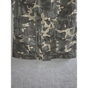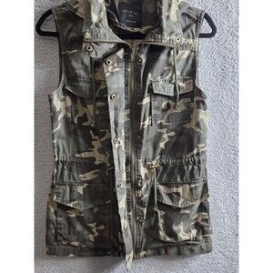 Active USA Vest Womens S Camo Hooded Utility Pockets Zip Front Drawstring Grunge