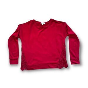 Active USA Women’s Red Sweater Lace Side Detail Size L Trendy Cozy