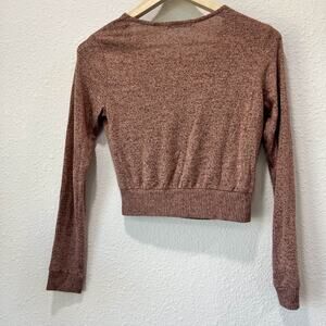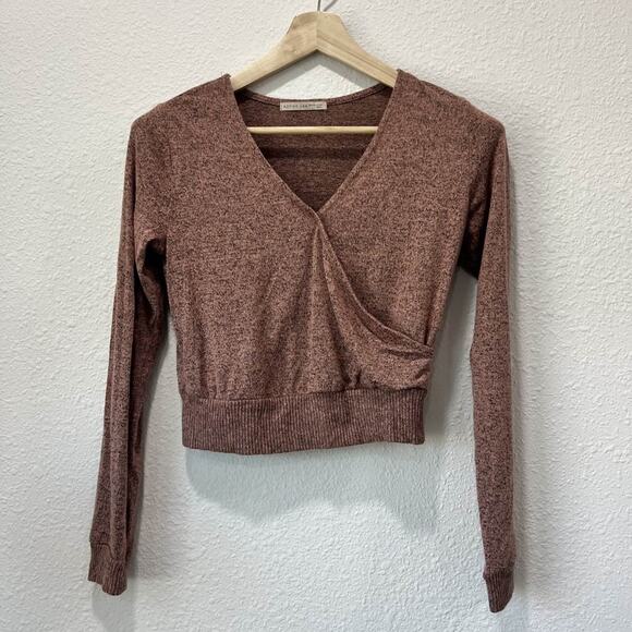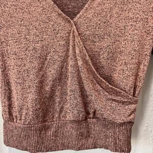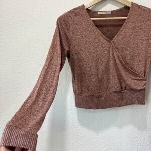 Active USA Womens Small Pink Mauve Faux Wrap Cropped Long Sleeve Sweater