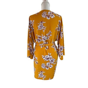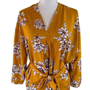 Active USA Yellow Open Slinky Cardigan Large Waist Tie Floral White Dark Red Top
