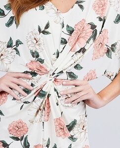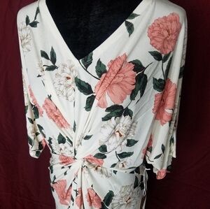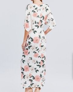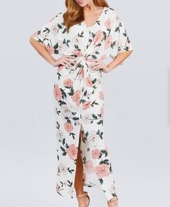Active USA short dolman sleeve, V-neck, front knot, slit, floral print, long dress