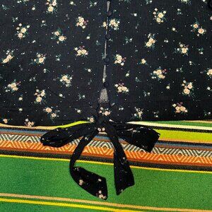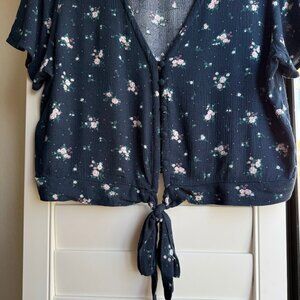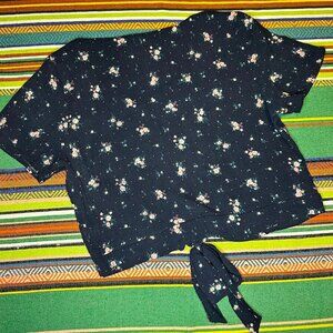 Active USA floral button down short sleeve crop top with bow in navy size large