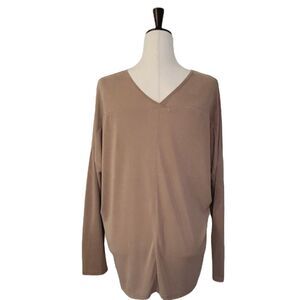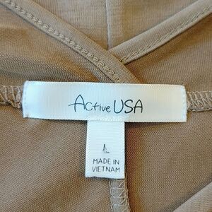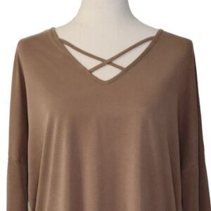 Active USA Heathered Tan V-neck Crisscross Drop Sleeve Stretchy Top Size L