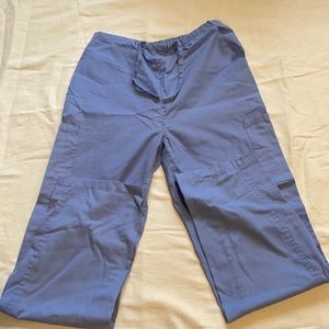 Two front pockets on the front. One side pocket on the pants. Adjustable waist band