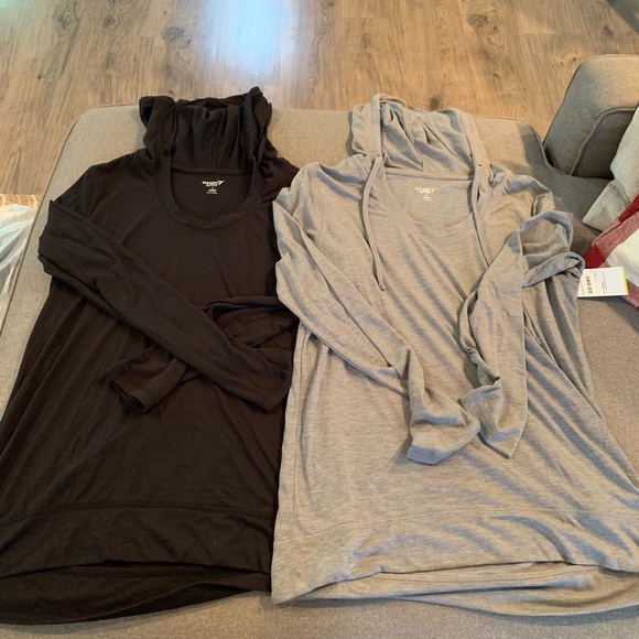 Two Old Navy Activewear long sleeve tees. Slightly longer in the back. Loose/semi fitted, with scoop neckline. Hooded. Lightweight breathable material perfect for lounge or active wear!