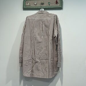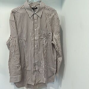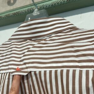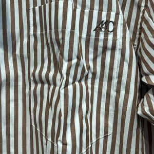 Active after coffe mocha white Casual Button Down Shirt Vertical Stripes large