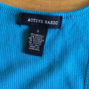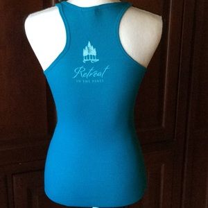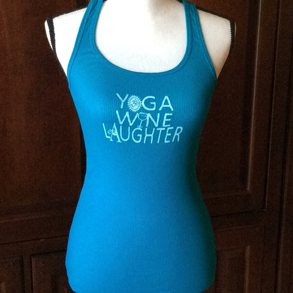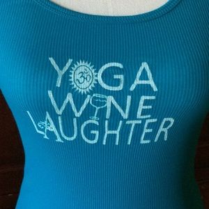 Cute Yoga Wine Laughter tank. Polyester cotton blend. Agra blue green color size small GUC