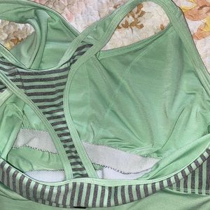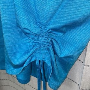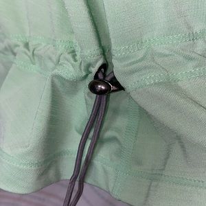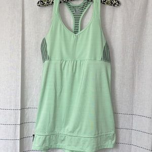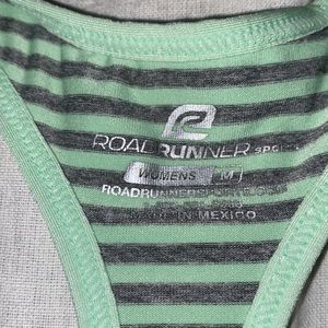 - Roadrunner Sports racerback tank with shelf bra and toggle at waist to cinch (85% poly/15% spandex)