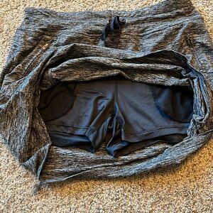 Gray active Skort in excellent condition. Has zipper pockets and a stretchy waistband with a tie. Three sizes available.