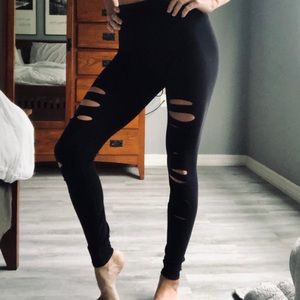 Alo Yoga high waisted ripped warrior leggings.