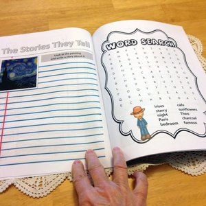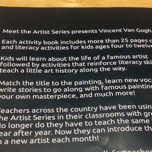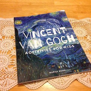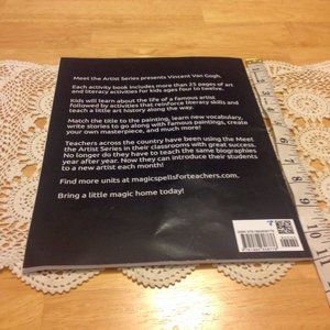 2020 paperback with color illustrations and more than 25 activities that are fun for kids, while they learn about Vincent Van Gogh. This is from a series of stand alone activity books from the Meet the Artist Series, used by teachers. Learn new vocabulary, write stories to go along with famous paintings, create your own masterpiece and more. Activities are simple but reading areas may require parent participation for younger kids. Book is unused but does have some creasing at spine and corners.