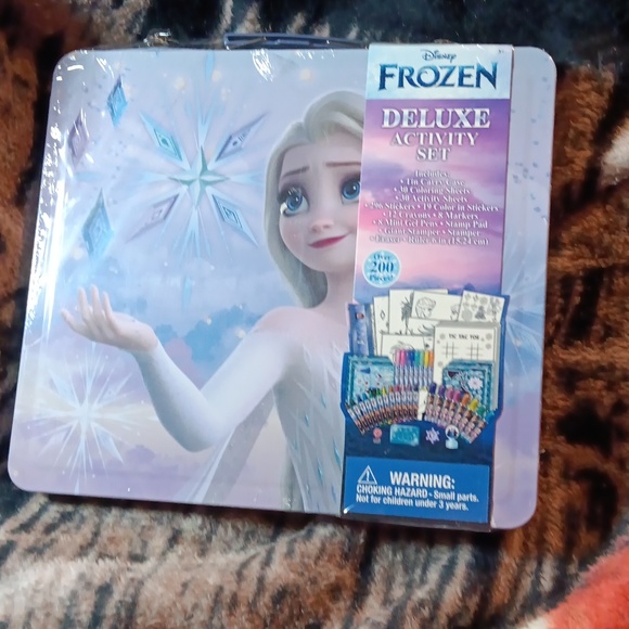 200 piece Frozen art set. your child will love hanging out coloring and sketching Ana, Olaf, along with all the frozen characters in thus deluxe activity set