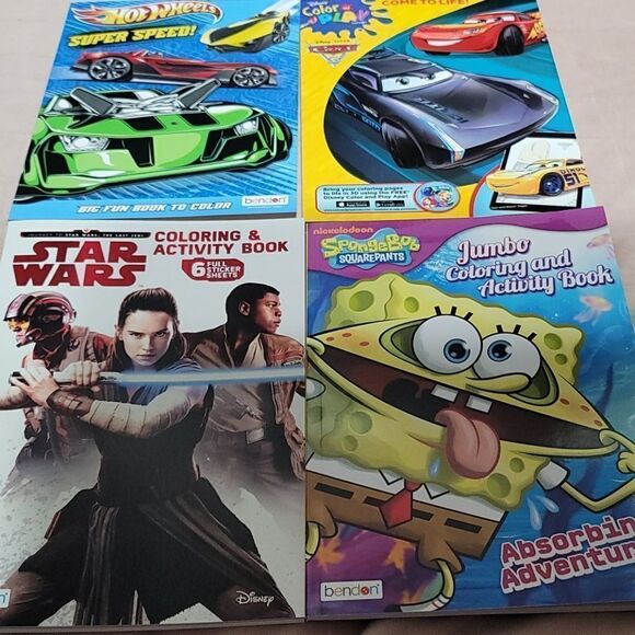 NWT. Awesome bundle of 4 Activity Books. Hot Wheels, SpongeBob, Cars, and Star Wars. Bundle includes coloring, activities, and stickers.