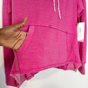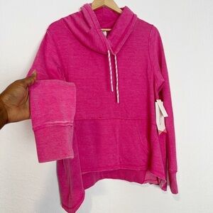 Made of a supersoft, washed cotton blend, this high-low pullover has a relaxed and deconstructed look.