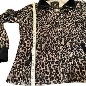 Ac-tiv-ology Leopard Print Velour Feel Jacket Black Collar and Cuffs Size Small. Great condition. Super soft. See photos for details and measurements