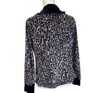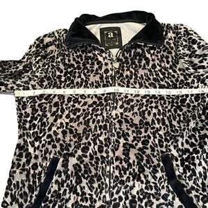 Ac-tiv-ology Leopard Print Velour Feel Jacket Black Collar and Cuffs Size Small