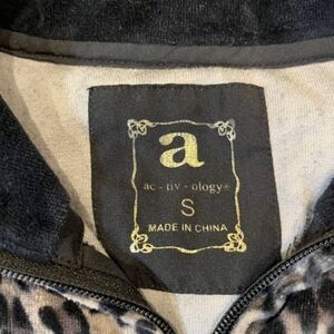 Ac-tiv-ology Leopard Print Velour Feel Jacket Black Collar and Cuffs Size Small. Great condition. Super soft. See photos for details and measurements