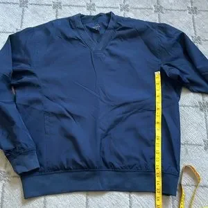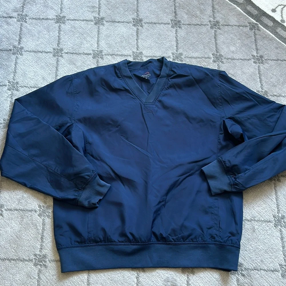 . Men’s medium navy blue acuity Nylon pull over with side pockets. Excellent use condition. Smoke-free home.