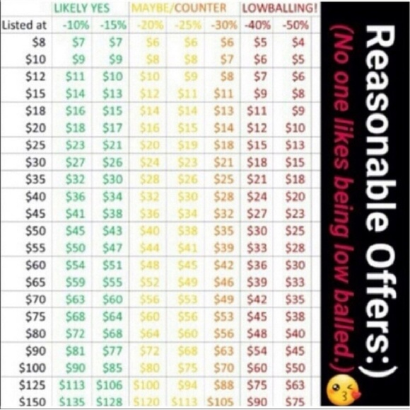 Just wanted to post as an FYI. I don't know about everyone else, but I don't sell on here to become rich. Please be considerate of your fellow posters when making an offer. Many of us will make special offers (especially) if you bundle (on top of the bundle discount), so don't be afraid to use the offer button!! HAPPY POSHING!
