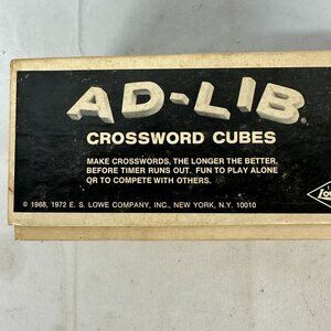 A vintage word-building game from 1968/72 by Lowe, Ad-Lib Crossword Cubes offers engaging, time-sensitive gameplay for solo fun or group competition.