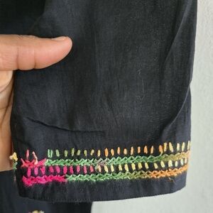 Ada Embroidered Floral Dress Womens XL Black Red Slits Flowy Boho Art New