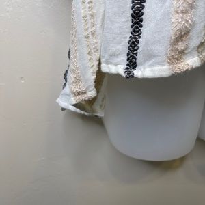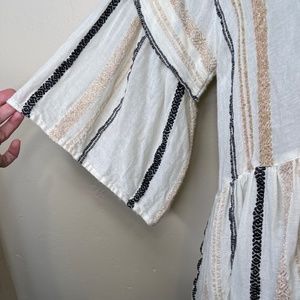 Ada Kamara Double X Top Stripe Embroidered Knit Detail Lightweight Peplum Loose Half Sleeve Cut Open Back Criss Cross Detailing Floaty CottageCore Boho Peasant Relaxed Blouse