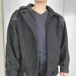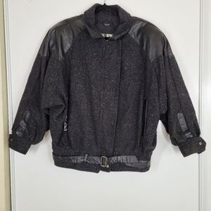 Ada Paris Vintage 1980s Fleck Wool Leather Bomber Jacket 9/10 Biker Glam Rock