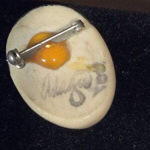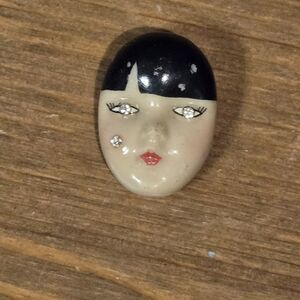 Beautiful Adagio porcelain face brooch pin. Hand crafted, hand painted, and signed by the artist. This particular face image is rare, with the small rhinestone as well. I have not found another one like it online. It measures approximately 1". Vintage 1980s